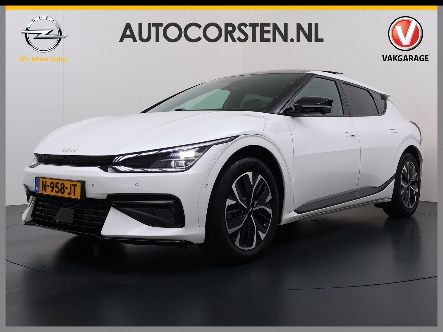 Kia EV6 GT-Line 77.4kWh Pano-Dak/Hef-dak SOH 100% 360°Camera Leer/Alcantara Adap.Cruise Head-Up Warmtepomp V2L Elektr.-Stoel-Massage+Ventilatie+Verwarmd+Memory Apple Carplay Android Auto Navi Ecc Stuur+Stoelverwarming Matrix-LED Meridian-Audio PDC-a+v DAB Elek.Achterklep Lmv Lane Assist Privacy Glas Laden tot 240kW 1e Eigenaar Origineel Nederlandse Auto